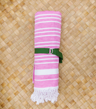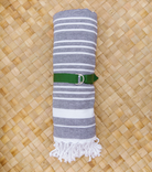 Woven from pure combed Aegean (Turkish) cotton and finished with hand-braided tassels. Each towel features a traditional woven Fouta herringbone stripe on one side with an ultra-absorbent plush terry loop on the reverse.