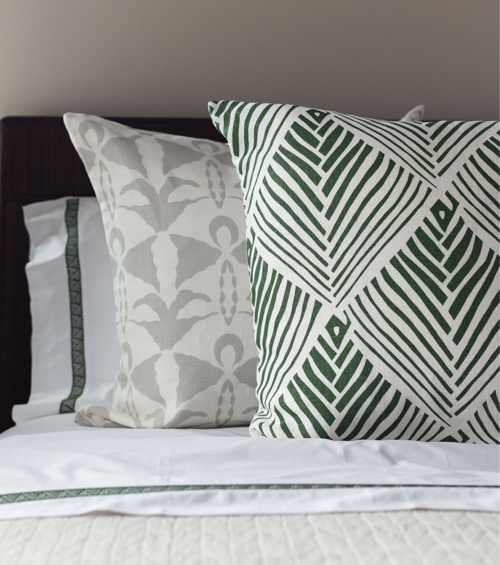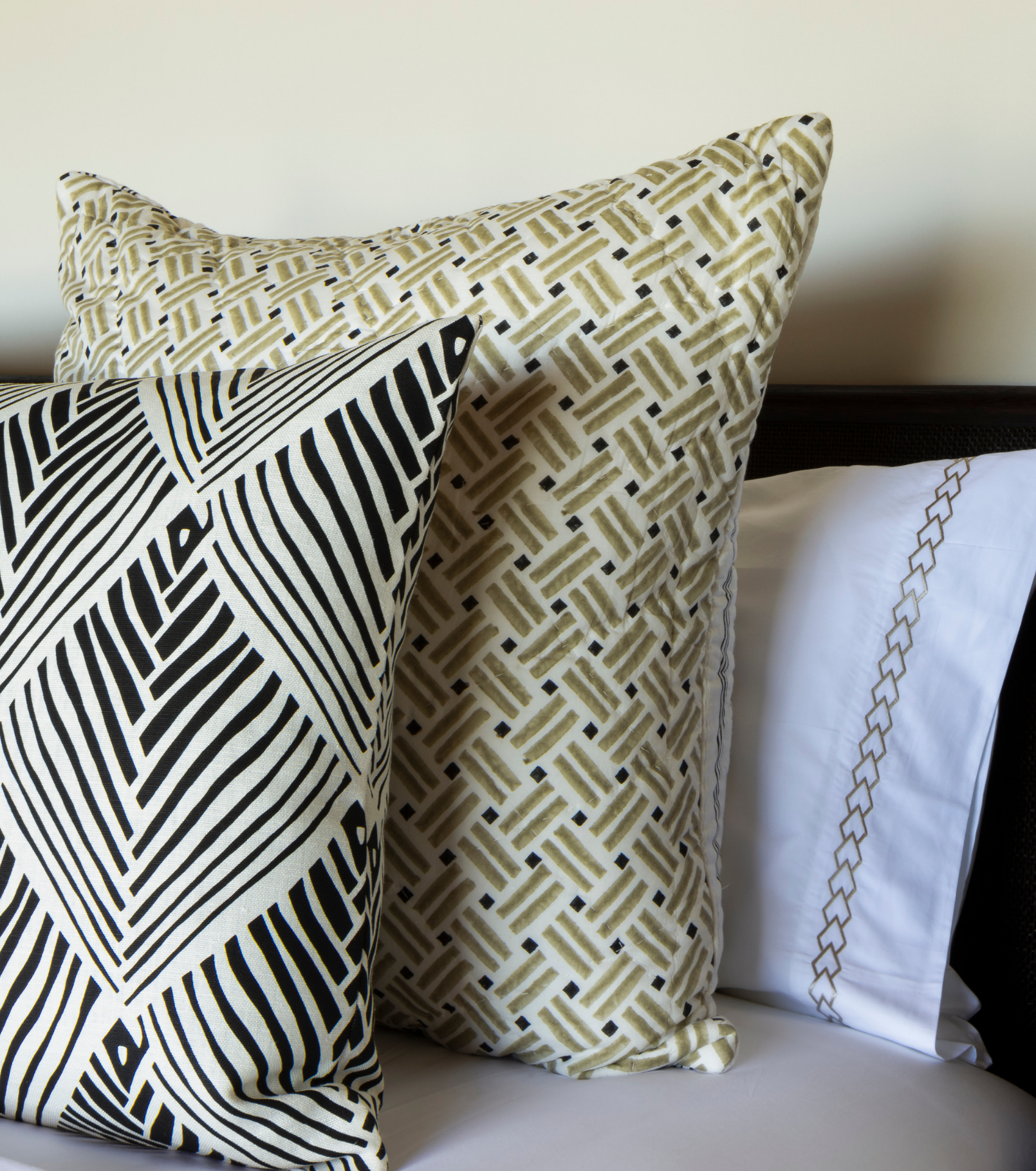 Since the prints are masterfully applied by hand, each sham is delightfully distinct.