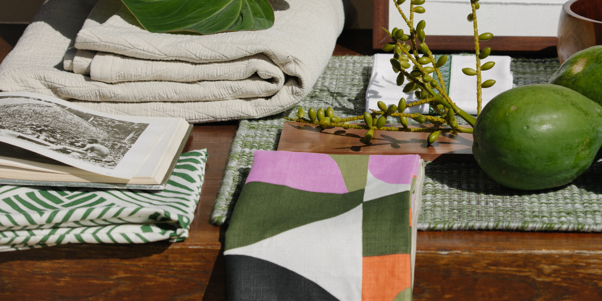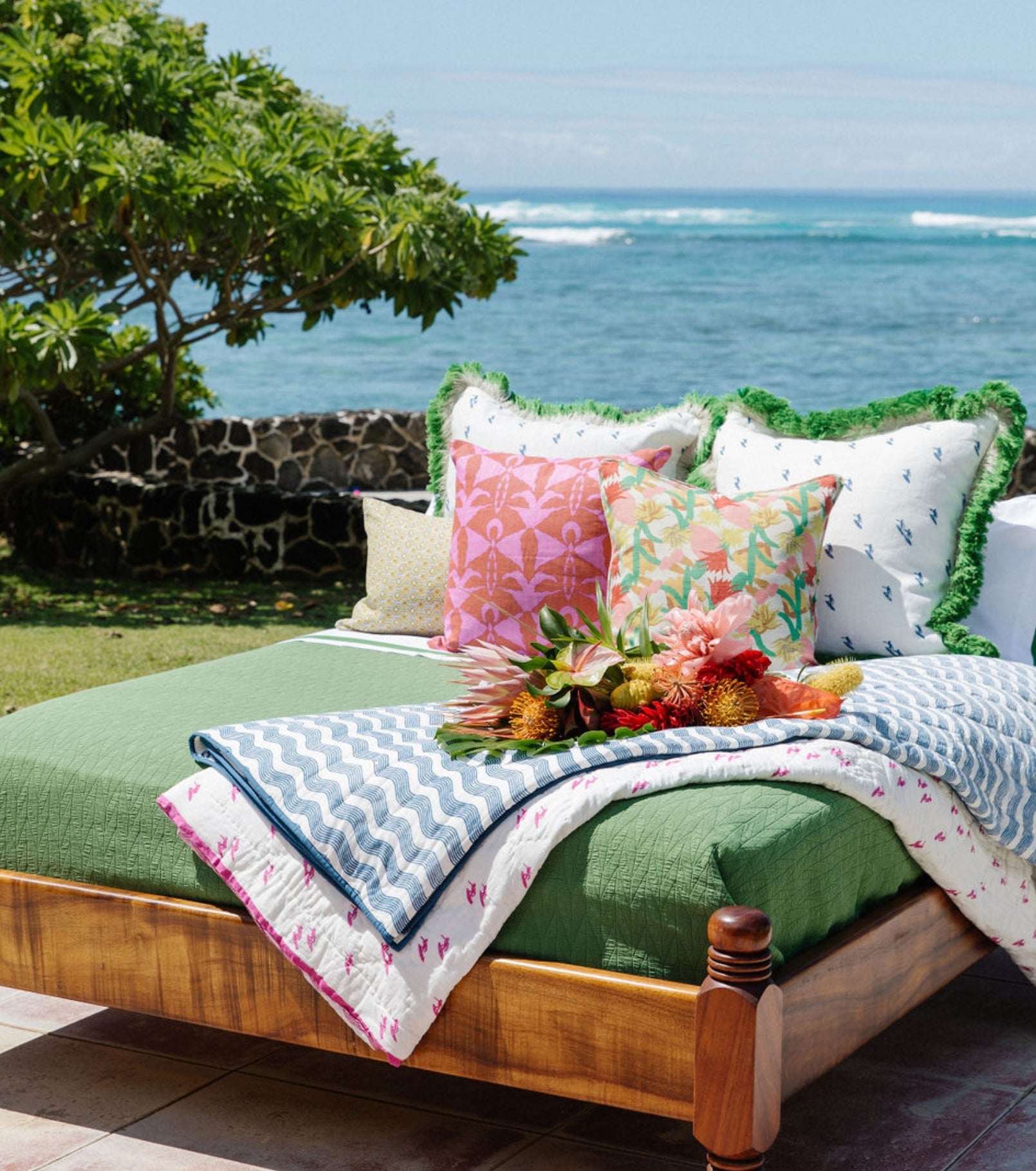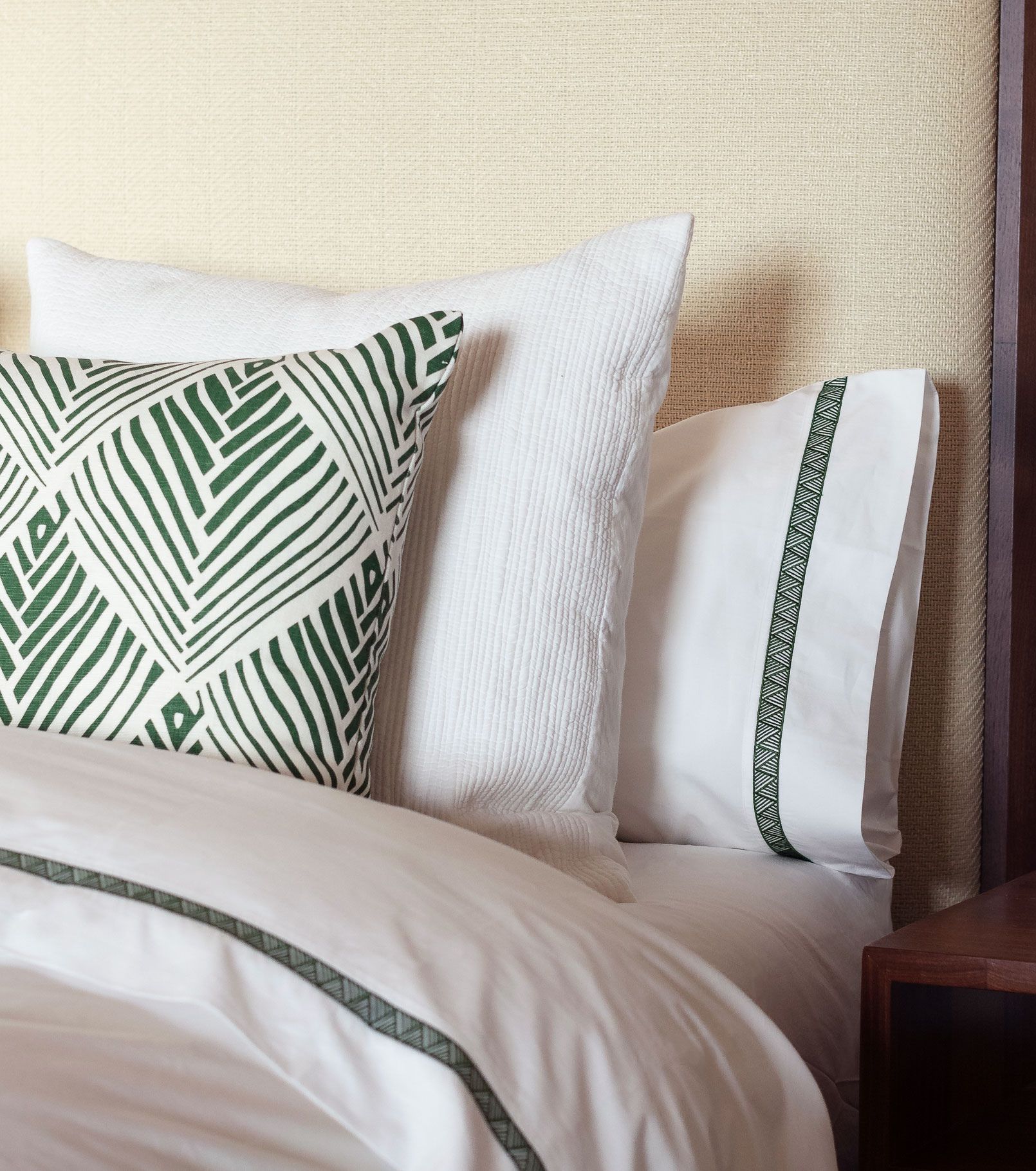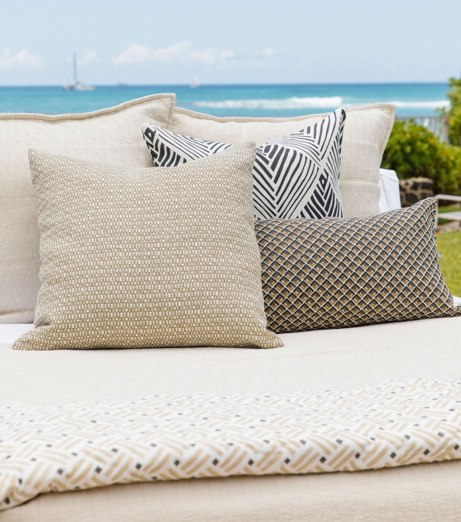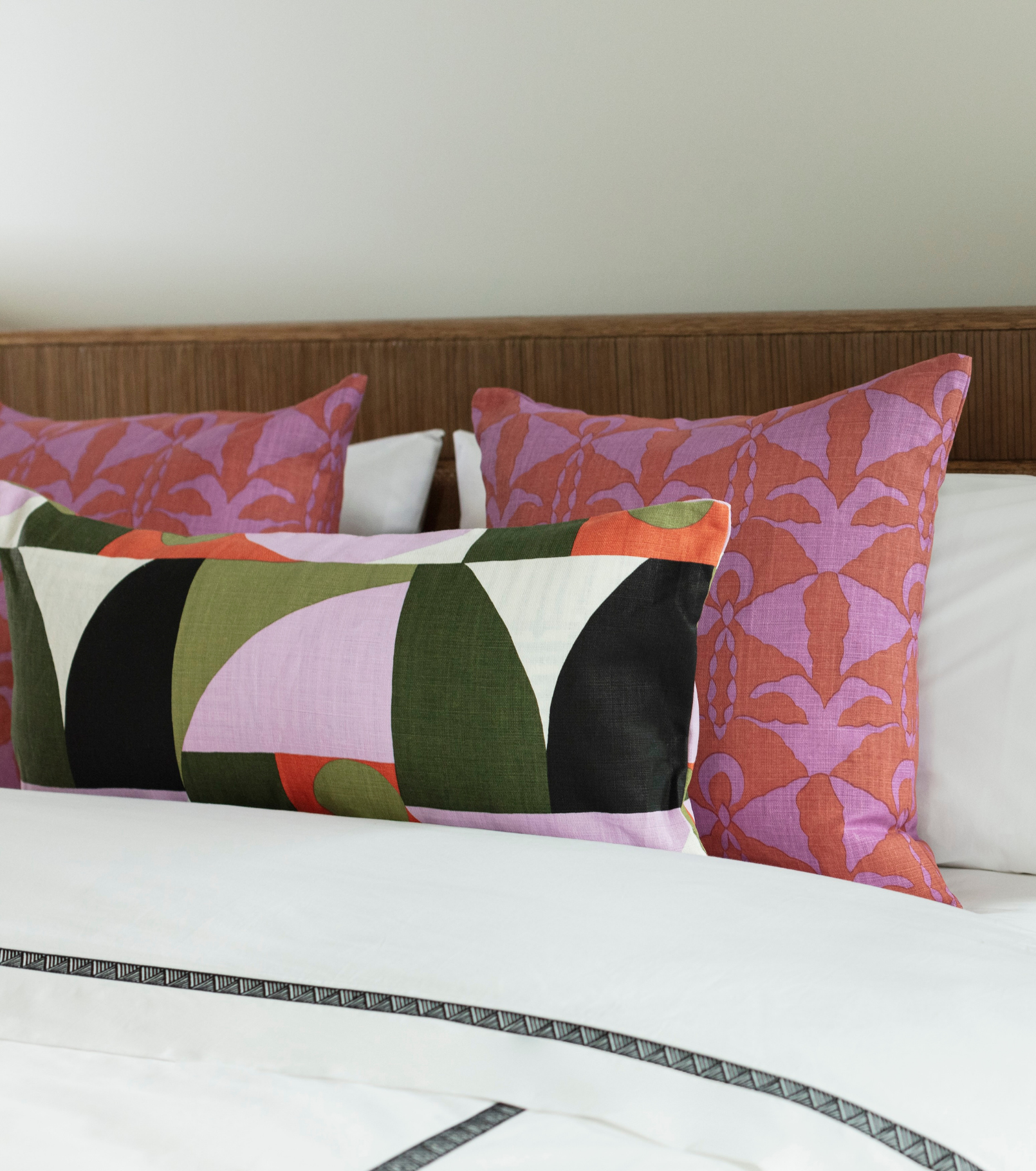 The palette of our premiere collection Pantones back to colors in textiles from Serena Dugan Studio, and we are excited feature pillows by Serena Dugan Studio as complements to our collection.