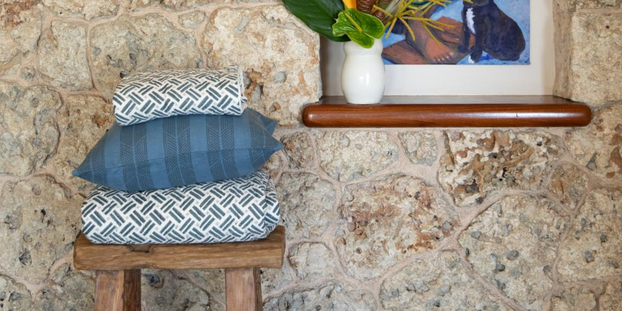 The palette of our premiere collection Pantones back to colors in textiles from Serena Dugan Studio, and we are excited feature pillows by Serena Dugan Studio as complements to our collection.