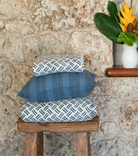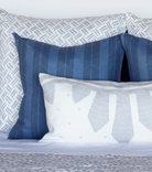 The strong graphical shape, form, and symbolism of totems inspired the crisp stripe of artist and textile designer Serena Dugan's Costa Pillow Cover in Ink & Indigo.