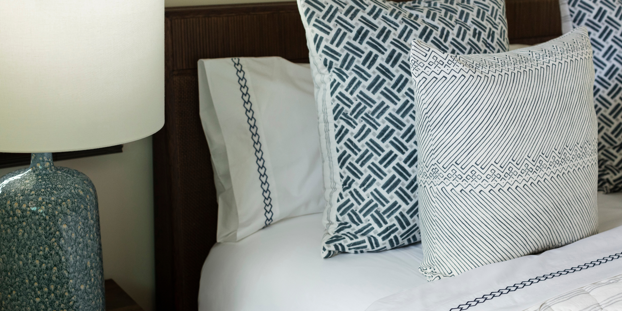 The palette of our premiere collection Pantones back to colors in textiles from Serena Dugan Studio, and we are excited feature pillows by Serena Dugan Studio as complements to our collection.