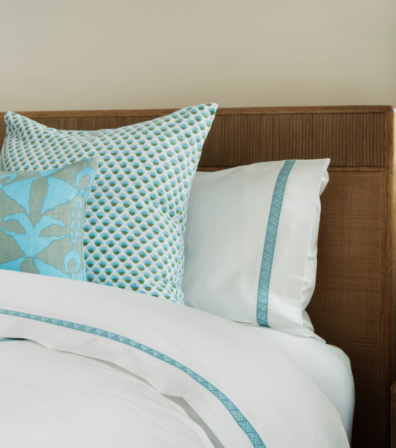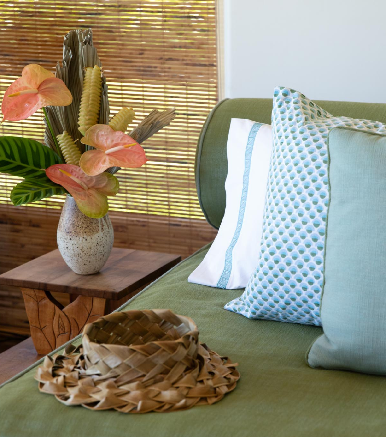 The palette of our premiere collection Pantones back to colors in textiles from Serena Dugan Studio, and we are excited feature pillows by Serena Dugan Studio as complements to our collection.