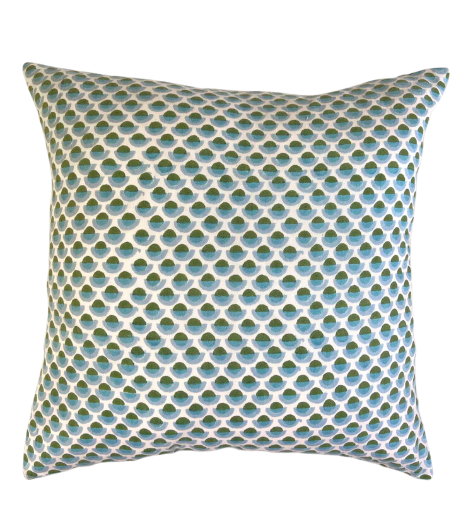 Each Olga Pillow features an animated polka dot designed by artist and textile designer Serena Dugan. Dugan uses color placement and the slight variations made possible by a hand-applied block print to make each pillow take on a spirit of its own.